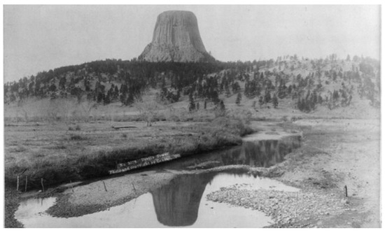 Given the prominence of Devils Tower as a feature on the land, it is not surprising that the tower occupies a central position in several Native American tribes’ Creation accounts. The tower’s unique beauty, its prominence as a landmark during the days of early Euro-American exploration, and a need to create a sense of cultural nationalism led President Theodore Roosevelt to set it aside by Presidential Proclamation as the first U.S. national monument on 24 September 1906 [35,36].