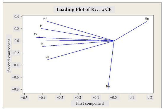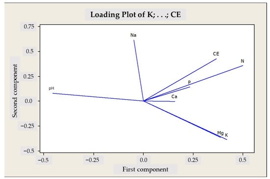 We conducted a principal component analysis (PCA) by correlating all the chemical parameters of the soil in two types of environments (Figure 9 and Figure 10).