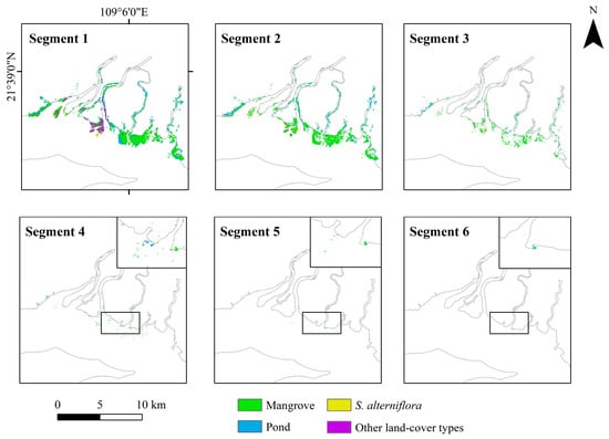 - Li, L.; Liu, W. Dynamic changes of mangrove wetland landscape pattern in Lianzhou gulf of Guangxi and its causes. J. For. Environ. 2018, 38, 171–177. [Google Scholar] [CrossRef]