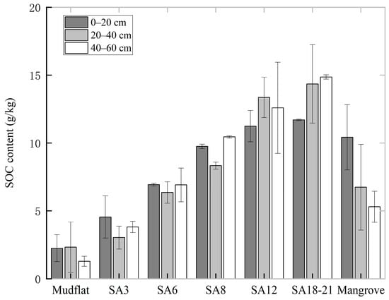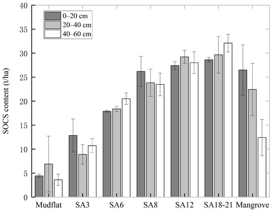 3.3. SOC and SOCS Content of S. alterniflora with Different Invasion Years
