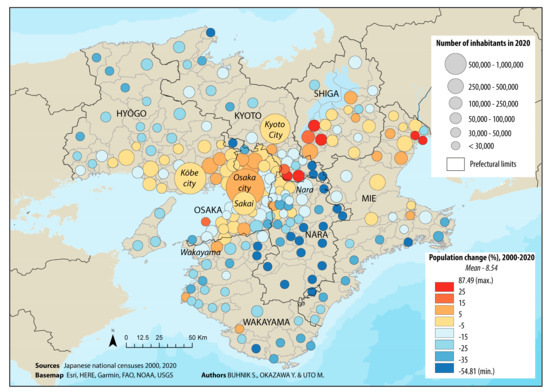 The Kansai metropolitan area accounts for a gradually decreasing percentage of Japan’s population and GDP, which illustrates its difficulties to resist a polarization of political and economic power by Tokyo [25]. For these reasons, the inner–outer distribution of decline, obvious in Tokyo’s case [26], is less evident here. These regional differences must be better understood if we want to improve the shrinking cities problem in Japan and beyond.