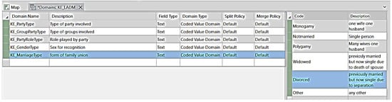 42. Bar-Maor, A.; Smyth, K. ArcGIS & LADM (ISO 19152): From Conceptual to Implementation. In Proceedings of the FIG Congress 2022, Warsaw, Poland, 11–15 September 2022. [Google Scholar]