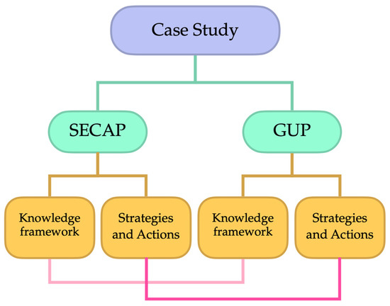 Diagram of the method of comparison between the knowledge frameworks and the strategies and actions of the case study’s SECAP and GUP.