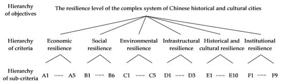 Hierarchical structural model of the resilience of historical and cultural Chinese cities.