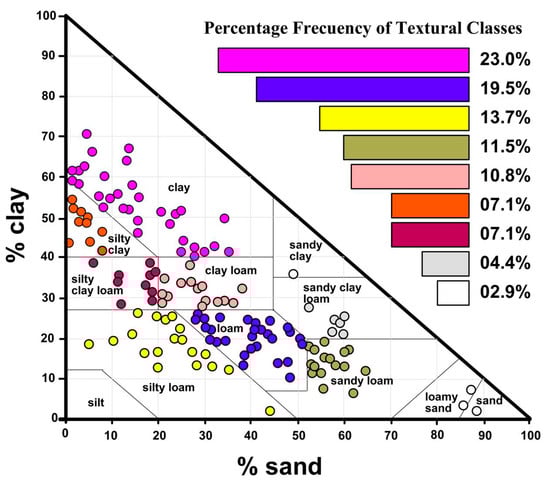 - Campbell, G.S.; Shiozawa, S. Prediction of hydraulic properties of soils using particle-size distribution and bulk density data. In International Workshop on Indirect Methods for Estimating the Hydraulic Properties of Unsaturated Soils; University of California: Los Angeles, CA, USA, 1992; pp. 317–328. [Google Scholar]
