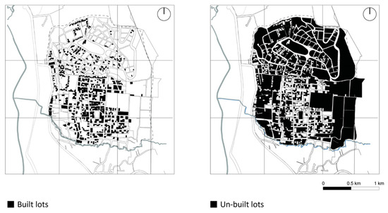 Figure 5. Built and unbuilt plots in the consolidation process of the San Cayetano neighborhood. Occupied and vacant spaces can be identified in the area, with the central area of the neighborhood showing a higher concentration of built-up plots, compared to the year 2020. Source: the authors (2024).