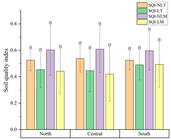 Soil quality index based on TDS and MDS. Note: a indicates no significant change.