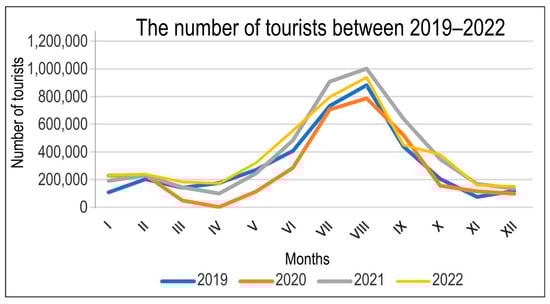 Monthly tourist traffic in the years 2019–2022. Source: Compiled by authors.