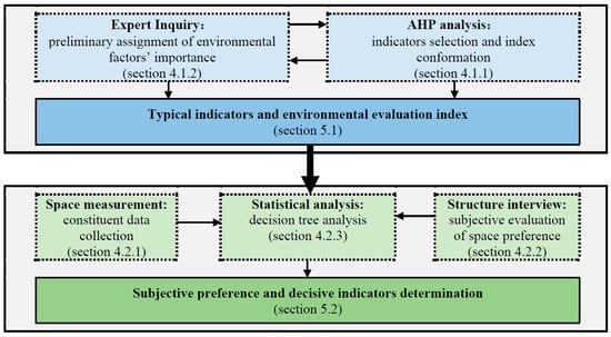 Corresponding to the aims of the study, this investigation selects the analytic hierarchy process (AHP) in the initial stage to establish the relatively comprehensive index of spatial features affecting neighbourhood space usage. Then, based on the established evaluation index, preferences for environmental features are further studied using a CRT decision tree.