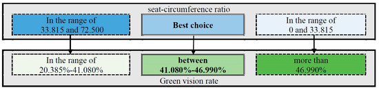 - The use of a green-vision rate between 20.4% and 47.0%, a shading rate less than 93.3%, and a seat–circumference ratio between 33.8% and 72.5% can yield a better space assessment. Moreover, a severe decline in preference can be anticipated when the green-vision rate falls below 20.4% or the shading rate exceeds 93.3%.