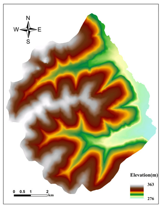 The study area is Heshan farm, which is located in the Heilongjiang province of China, with an elevation which ranges from 276 to 363 m (Figure 1). The area has a gentle slope with an average slope of 2° and has been cultivated as crop areas for more than 40 years. The main crops are wheat and soybean. Besides the valley bottom with fluvial deposits, the whole area is covered by silt loam loess. Due to the small area (i.e., 60 km2) of the study area, the macro climate conditions over the study area do not vary substantially [32]. The soil subgroups were classified at the subgroup level in the Chinese soil taxonomy system [33]. There are six main subgroups in total: Pachic Stagni-Udic Isohumosols (PSUI), Mollic Bori-Udic Cambosols (MBUC), Typic Hapli-Udic Isohumosols (THUI), Typic Bori-Udic Cambosols (TBUC), Lithic Udi-Orthic Primosols (LUOP) and Fibric Histic-Typic Haplic Stagnic Gleyosols (FHTHSG) [32].