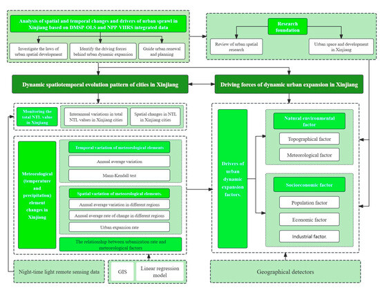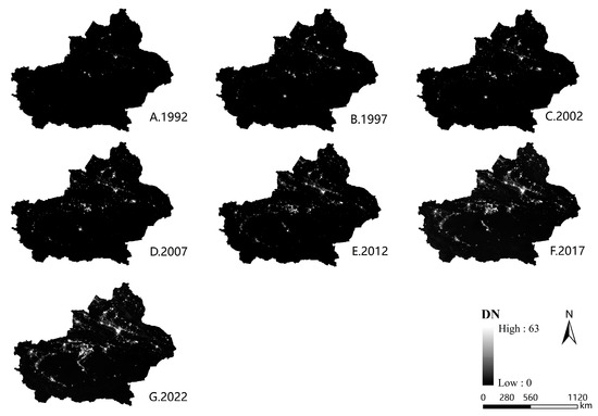 Wang, L.; Xu, W.; Xue, X.; Wang, H.; Li, Z.; Wang, Y. Analysis of Spatial and Temporal Changes and Drivers of Urban Sprawl in Xinjiang Based on Integrated DMSP-OLS and NPP-VIIRS Data. Land 2024, 13, 567. https://doi.org/10.3390/land13050567