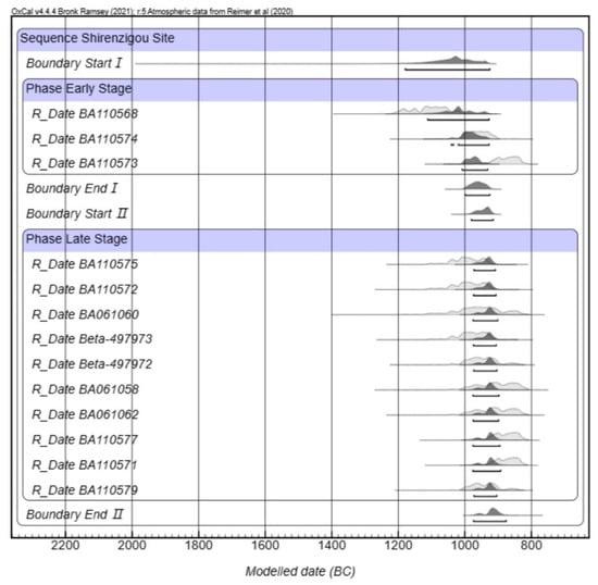 Calibrated radiocarbon dates for Shirenzigou. Accelerator Mass Spectrometry Dating Laboratory of Peking University and Beta Lab, calibrated using OxCal and IntCal20 [64,65] (OxCal online version 4.4.4).