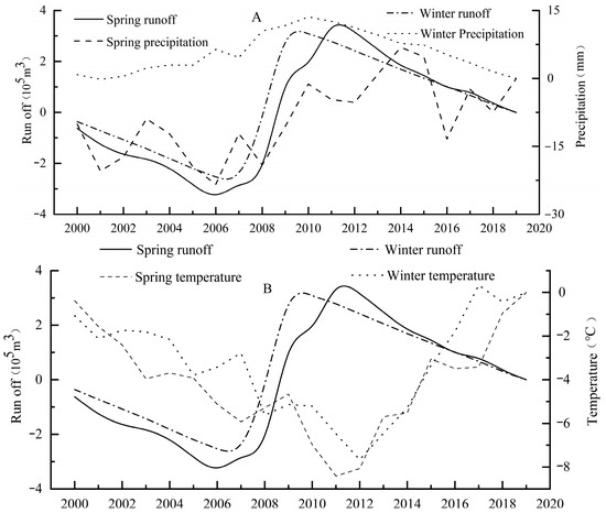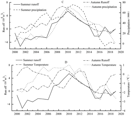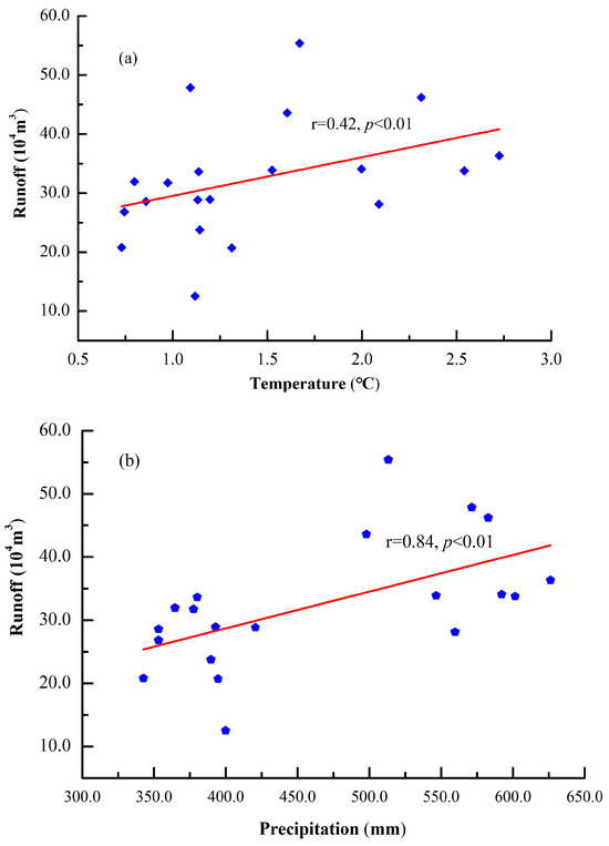 3.3. Relationships between Runoff, Temperature, and Precipitation