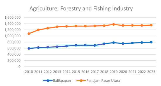 The analysis result reveals a trend of growth in the agriculture, forestry, and fisheries sectors in Pontianak and North Penajam Paser, allowing for several conclusions regarding the potential impact on land use and deforestation around the new capital area (IKN), including Balikpapan and PPU. Consistent growth in these sectors, mainly driven by the increased demand for agricultural and forestry products, could lead to expanding agricultural and forestry lands. In areas experiencing economic growth, such as around the IKN, this may result in the conversion of forest land into agricultural or plantation lands. This increase could also stem from more significant investment in agricultural and forestry technologies, necessitating new land clearing. Without sustainable practices and proper forest management, growth in these sectors could accelerate deforestation. Excessive logging to meet market demands or expanding agricultural areas could reduce forest cover. This often occurs when economic growth is not aligned with solid environmental policies or when land use and forest management enforcement is lacking.