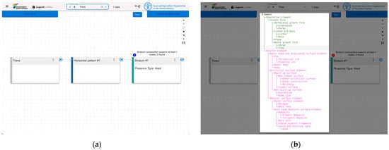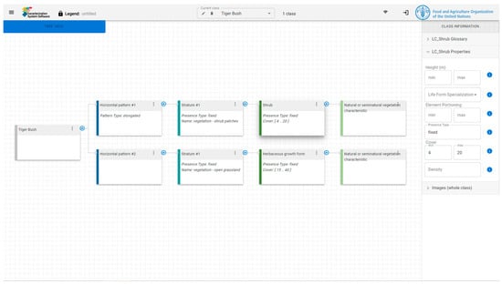 Some of the additional (but optional parts), such as irrigation ponds, for the sake of brevity in the LCML description, are not considered in the provided conversion, shown in Figure 8, as recreated in the LCHS by either assembling the graphical blocks individually or by importing classes from the FAO Land Cover Legend Registry (LCLR). Indeed, CLC, along with many other national and regional legends converted and represented in LCML, are available in the LCLR and can be imported into the LCHS.