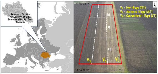- Raus, L.; Jitareanu, G.; Ailincăi, C.; Parvan, L.; Topa, D. Impact of different soil tillage systems and organo-mineral fertilization on physical properties of the soil and on crop yield in pedoclimatical conditions of Moldavian plateau. Rom. Agric. Res. 2016, 33, 111–123. [Google Scholar]
