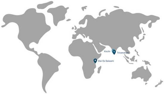 Since neither public nor private provision of housing has been sufficient in the Global South, many communities and households have found themselves the primary actors in housing processes [14,15]. Under the right conditions, active community participation in, and multi-actor partnerships for, the provision of housing and other urban basic services have been found to have positive societal and environmental impacts [3,16,17,18]. In this paper, we aim to explore, through a case study approach, the circumstances under which community involvement in housing programs can produce more environmentally friendly, economically attractive, and socially inclusive housing when compared to ‘business as usual’ methods that are most often led by (a combination of) the state or commercial private sector. City-level case studies from Dar es Salaam (Tanzania) and Kochi and Trivandrum in the state of Kerala (India) are presented, alongside a national land and housing program from each country. Ultimately, we seek to add to a growing body of evidence demonstrating the potential of community-based organizations to contribute to the provision of adequate shelter and, more generally, the importance of place-based approaches to building inclusive cities that are embedded in wider multilevel governance structures [15,19]. Here, it is worth briefly denoting the interpretation of “provision”, which is deliberately broad and encompasses processes related to community building, land delivery and land holding mechanisms, housing construction, and associated governance structures [20]. Similarly, reference to the participation of communities in housing provision is used to signify ‘a wide array of […] forms of collective self-organized housing […] defined by high levels of user participation, mutual help and solidarity and different forms of crowd financing and management, amongst others’ [21] (p. 56).