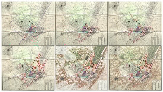 Studies on urban forms and volumetric and figurative mutations due to Human Geography have found interesting results in architectural design. The ‘flows of energy displacement’ [9] represent the forces that justify tensions and unveil potential urban adjustments (specializations and transformations) for the contextual reform of both inherited and contemporary cities. New building and architectural figurations overlaid on the inherited urban storytelling. New phases of a primarily continuous process, punctuated by occasional discontinuities [20], are inherent in various conceptualizations of the city [21] developed at different times under distinct sets of rules. Recognizable essences and images of cities in late-1800s maps represent a reality still linked to limited heteronomous influences and limited oppositional overlaps. Epiphanies of discontinuity, architectural compositions primarily tied to ‘spontaneous’ culture or a shared, yet limited, academic practice, are imposed and superimposed onto a city capable of assimilating any incongruous insertions or architectural mistakes.