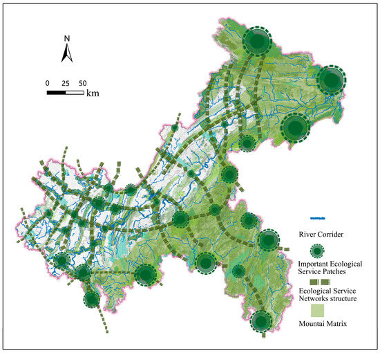 In the Anthropocene era, rapid urbanization has led to unprecedented human alterations of the Earth’s land surface, posing a threat to ecosystem services supply and, ultimately, human well-being [1,2,3,4]. Mountain ecosystems, serving as critical sentinels of ecosystem services, support 22% of the world’s population, providing a disproportionate measure of essential ecosystem services, such as freshwater, raw materials, climate regulation, and recreation [5,6,7,8]. However, due to unprecedented rates and magnitude of population growth, unsustainable development, and exploitation of resources, the pressure on natural ecosystems in mountain regions is becoming greater and greater, influencing their structure and function [9,10,11]. This pressure exacerbates landscape fragmentation and decreases landscape connectivity, altering the size, shape, spatial arrangement, and isolation of habitat patches, consequently influencing ecological processes such as soil flow, water, energy, and organisms across landscapes [12]. Consequently, the supply of ecosystem services in mountain regions is increasingly jeopardized [13,14]. Ongoing research continues to emphasize the indispensable role of ecological networks in developing strategies to regulate specific ecological processes and increase landscape connectivity in vulnerable mountainous areas [15,16,17,18], thereby enhancing ecosystem functionality and ensuring regional ecological stability.
