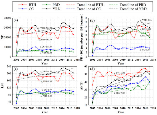 - China’s National Land Use and Cover Change (CNLUCC) for 2002, 2005, 2010, 2015, and 2017 with 1 km spatial resolution was provided by the Resource and Environment Science and Data Center (RESDC) (http://www.resdc.cn, accessed on 1 June 2022), which includes 23 land types [63]. The land use types were concluded to be arable land and urban land in this study by reclassification.