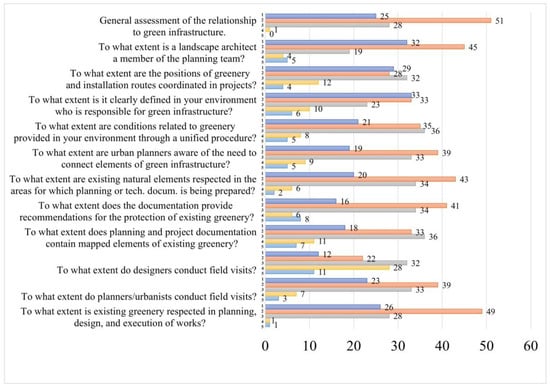 Responses to the question “Evaluate the importance of green infrastructure for the quality of life in urban environments”. are presented in Figure 3.