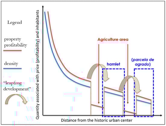 The phenomenon of urban expansion is not exclusive to large urban areas or metropolises. Sereno, Santamaría, and Santarelli [30] highlighted this process in medium-sized cities in Argentina, referring to these areas as “rururban” areas, and analyze the “impacts of global urban pressures and the sense of belonging on the willingness to change their way of life and the fate of the lands” [30] (p. 41). Additionally, Ávila [31] suggested using the concept of “periurban” to address the process of cities expanding into their rural areas. He particularly emphasizes the heterogeneity of the actors involved in the periurban space in Latin America.