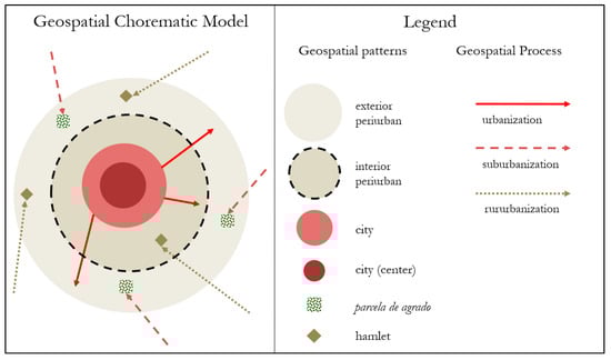 4.3. Composition of the Periurbanization Process in Chile: Proposal of a Geospatial Chorematic Model for Subregional Intermediate-Sized Cities and Its contribution to Latin America and the Global South