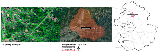 We chose Dongducheon City in the Gyeonggi Province as our study location because of the lack of biotope maps available for this city. Meso-classification type evaluation, which is a standard used at local and national levels, was applied as a five-grade system and the minor-classification type evaluation (final type evaluation), which reflects the ecological characteristics of the region based on the results of the meso-classification evaluation, was applied as a seven-grade system (Figure 7).