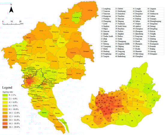 42. Xie, B.; Zhou, J.; Luo, X. Mapping Spatial Variation of Population Aging in China’s Mega Cities. J. Maps 2016, 12, 181–192. [Google Scholar] [CrossRef]