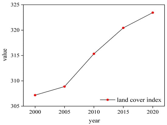 In this study, a comprehensive index of land use in Tianjin in 2000, 2005, 2010, 2015 and 2020 was calculated (Figure 7). We found that from 2000 to 2020, the comprehensive index of land use in Tianjin showed an increasing state, indicating that land use in Tianjin still has potential in terms of utilization and development.