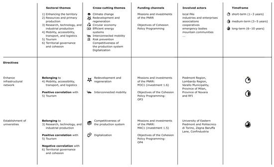 - Highlight correlations between the directives identified for each AIT, the 6 “sectoral themes of territorial relevance” defined by the PTR, and the 8 “cross-cutting themes”;