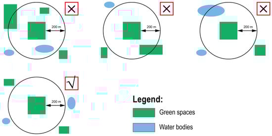Schematic diagram of green city areas sample selection (The green areas of the graph labeled “x” are not suitable for selective research, and the green areas of the graph labeled “√” are suitable for research).