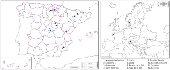 This study intends to offer an insight in the patrimonialization of traditional inland salinas in Spain and compare it with three case studies in the rest of Europe. In Spain, nine inland salinas that had been declared as a Good of Cultural Interest (BIC, in its Spanish acronym) as of 2019 were selected (see Figure 1 and Table 1), under the understating that, regardless of their state of conservation, this status was a first step in their path towards patrimonialization. In the rest of Europe, three case studies of successful patrimonialization were selected, namely the marais salants de Guérande, in Guérande, France; the Sečovljske soline in Sečovlje, Slovenia; and the Læsø salt syderi in the island of Læsø, Denmark (see Figure 1 and Table 1). Although similar successful cases exist in the continent, these stand out for being the site of reference and inspiration in western (Guérande), northern (Læsø) and southeastern Europe (Sečovlje), respectively, thereby covering a broad geographical scope. In addition, their individual histories as well as current management models (see Table 2) also provide a diversity of situations that have led to success though differing pathways, thereby serving as paradigms for a variety of cultural productive landscapes. The goal of this study is to deepen the understanding of the patrimonialization process of traditional salinas in Europe, to identify and characterize its main stages, indicating the main challenges in each one of them. The results are expected to help in understanding and supporting similar patrimonialization processes in other heritagescapes and cultural landscapes and preventing their abandonment or decay.