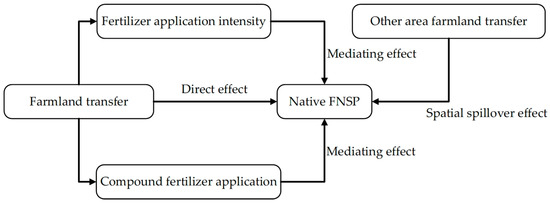 One perspective contends that farmland transfer and large-scale agricultural operations facilitate fertilizer reduction [27,28,29,30,31]. Scale growers typically employ more judicious fertilizer than small farmers [32]. Farmland transfer enables the realization of economies of scale, thereby expanding avenues for knowledge and technology transfer among farmers. Moreover, it enhances farmers’ comprehension and utilization of cleaner production methods, subsequently refining factor input management and fostering more scientific and rational fertilizer application practices [27,33,34,35]. Another perspective suggests that farmland transfer and large-scale operations do not necessarily lead to fertilizer reduction. The farmland transfer may introduce management rights instability [36], potentially fostering moral hazard among farmers who may prioritize short-term gains and invest heavily in fertilizers [37,38]. Furthermore, expanding the operational scale may increase the demand for production factors and incentivize labor substitution with inputs such as fertilizers, thereby increasing chemical fertilizer usage [39,40]. Studies have analyzed the connection between farmland transfer and fertilizer usage. However, there is a relative scarcity of research directly investigating the correlation between farmland transfer and FNSP. Moreover, the exploration of its underlying mechanisms remains somewhat limited. Furthermore, given the spatial delineation of farmland across various regions, it becomes essential to analyze the environmental ramifications of farmland transfer from a spatial perspective.