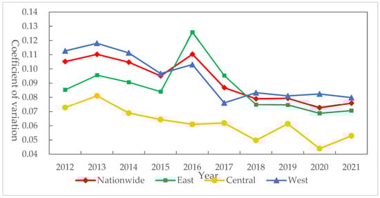 where σht denotes the coefficient of variation for year t in region h, Nh denotes the number of provinces in region h, yiht denotes the agricultural sustainability index for the ith province of region h in year t, denotes the average value of the agricultural sustainability index for year t in region h.