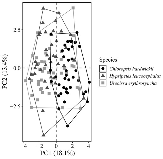 3.4. The Key Discriminant Factors Differentiating the Three Bird Species