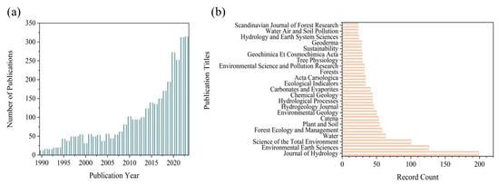 (a) The number of published articles related to karst soil and water resources since 1990. (b) Top 25 titles of publications.