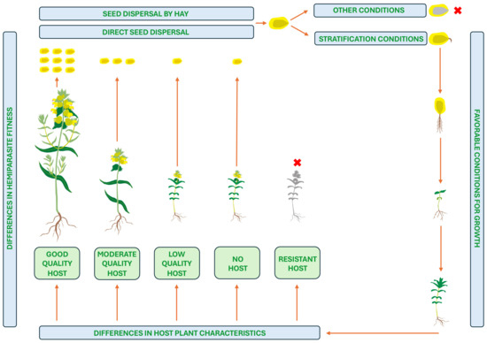 The life cycle of an individual of a typical Rhinanthus species showing dependence on host plant quality.