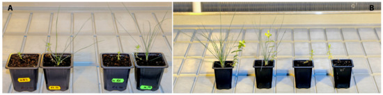 The effect of reducing the biomass of the host plant as a result of defoliation on the parasitic interaction was also studied. Thus, partial defoliation (50% of entire leaves removed) of Agrostis capillaris plants had no significant effect on shoot or root biomass of attached R. serotinus plants, but the number of flowers decreased significantly [73]. However, the effect was significant only when defoliation of the host plant was performed in the developmental phase of the parasite when the demand for resources was at its highest.