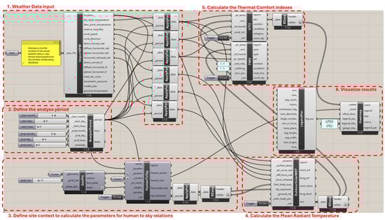 Workflow diagram for the outdoor thermal comfort analysis in Grasshopper with the Ladybugs Tools plugin.