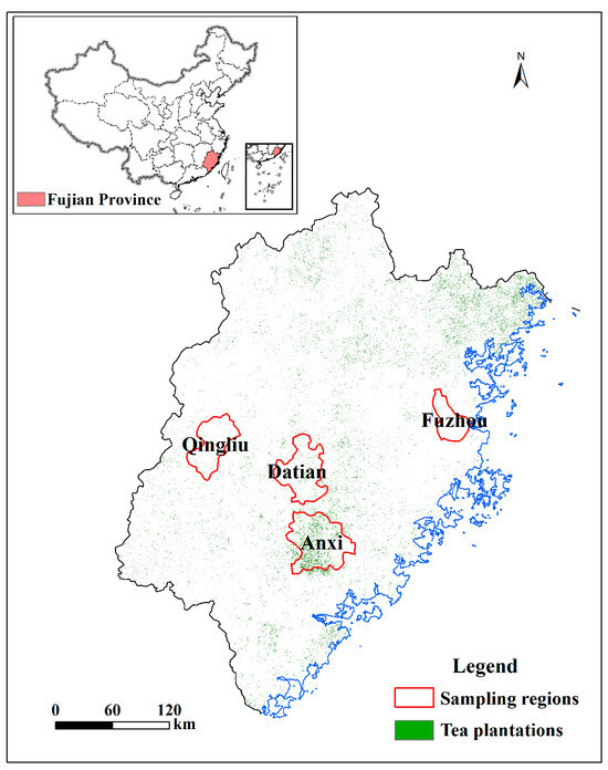 The distribution and sampling regions in tea plantations in Fujian Province.