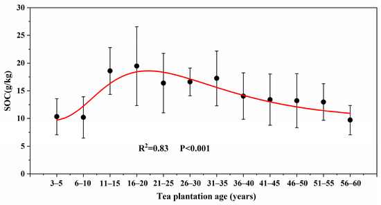 SOC–age curve in the tea plantations.