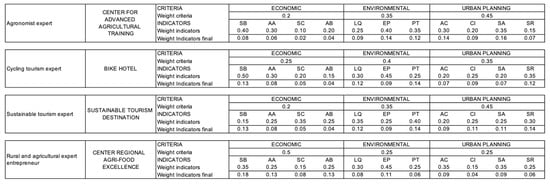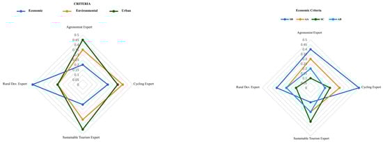In the evaluation of the four selected functional scenarios, we begin by defining the criteria representing the different performance dimensions for the alternatives considered. Three categories of criteria were first identified: economic, environmental, and urban. Four experts and key actors were involved in the decision-making process, each representing a specific decision scenario for each reuse project. Each functional decision scenario identified was associated with an expert, with specific expertise in relation to the proposed new reuse destination, whose judgement was crucial to ensure the relevance and accuracy of the assessments. In the evaluation, each expert incorporated his or her preferences on the relative importance of the evaluation criteria, reflecting his or her specific priorities and objectives, and made judgements on the performance of each station in relation to a specific use.