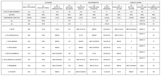 In meeting these requirements, decision-making processes [,] concerning CH valorization can leverage multi-criteria methods to comprehensively consider diverse heritage aspects. Additionally, employing multi-actor methods becomes imperative as they allow for the incorporation of the varied interests and perspectives of public, private, and social actors [,,]. Multi-criteria methods [,,,] are versatile and adaptable, finding application across different stages and levels—be they strategic, tactical, operative, or managerial—of the valorization process. By pursuing various objectives, these methods contribute significantly to strategic decision making, aid in formulating and identifying viable alternatives, facilitate the ongoing monitoring of development, and enable the assessment of outcomes.