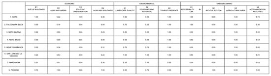 In the context of the study, each criterion was articulated through specific indicators that aimed to provide a detailed measure of the physical and contextual characteristics and condition of the properties located within the stations being assessed. Each indicator was carefully selected and measured to ensure an accurate and objective assessment, thus facilitating informed and strategic decisions in the context of railway property management and development. For the economic criteria, each indicator was carefully selected and measured to ensure an accurate and objective assessment of the real estate around each station, thereby facilitating informed and strategic decisions in the context of railway property management and development. For the Environmental Criteria, each indicator provides an in-depth understanding of how the surrounding environment influences and enhances the value and use of railway property, enabling professionals to make informed decisions based on tangible environmental factors. For the Urban Criteria, specific indicators are essential to assess the potential for integration and connectivity of stations into the wider infrastructure and environmental and service fabric, providing a sound basis for planning and development decisions.