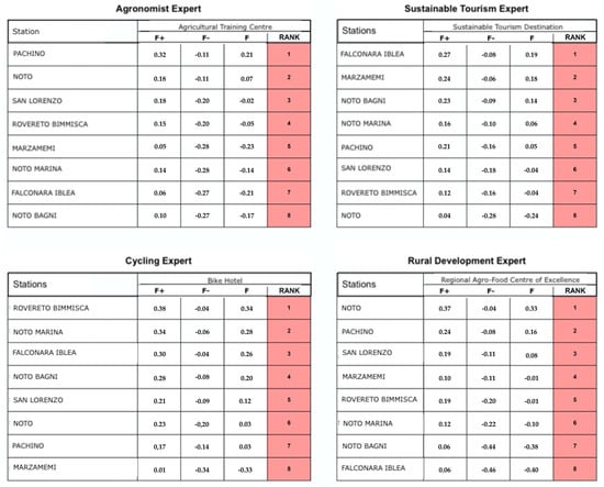 The end result of PROMETHEE was a final ranking in which each expert identified which station had the best characteristics to accommodate the functional scenario associated with its expertise. This approach enabled a detailed and contextualized assessment of disused railway stations, providing a solid basis for the planning and implementation of adaptive reuse and urban and territorial regeneration projects.
