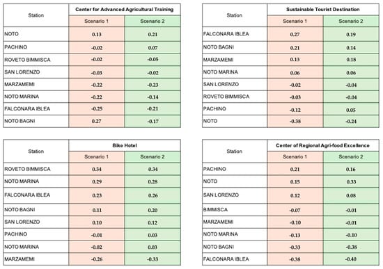 The objective of the MCDSA assessment through the PROMETHEE method was to determine the most suitable location for the implementation of each of the four functional scenarios selected in the integrated project. The PROMETHEE assessment supports the Decider Makers (DMs) in defining the optimal locations of the functional scenarios based on the characteristics of the buildings and thus aims to determine which of these buildings and assets located in the stations are the most suitable to accommodate the proposed new reuse destinations according to the four selected functional scenarios.
