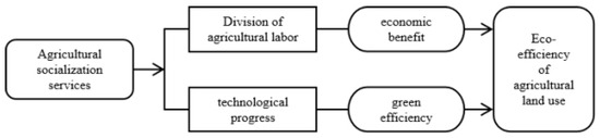 Agricultural socialization services enhance the economic and ecological efficiency of farmers through the division of labor in agriculture and technological advances, which, in turn, enhance the eco-efficiency of agricultural land use.