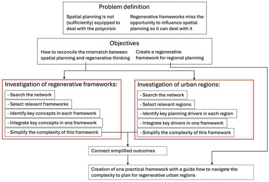 The goal is to reconcile the mismatch between a failing spatial planning system and the impotency of regenerative frameworks, transforming spatial planning into a system that could create regenerative regions. The main research question is how to create a regenerative framework for regional planning. To tackle this question, a mix of methods was used (Figure 2). Two pathways of investigation were distinguished: a theoretical pathway, investigating existing regenerative frameworks, and a practical pathway, exploring existing urban regions.